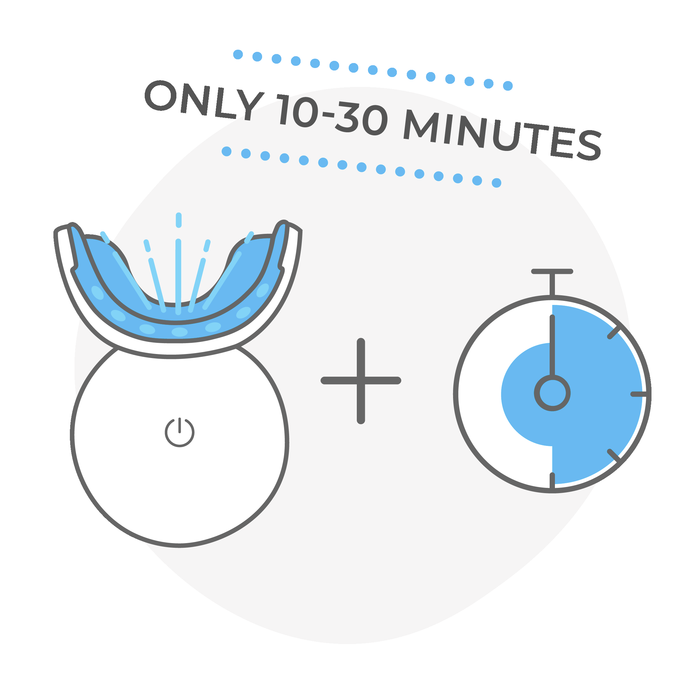 Most customers see a noticeable difference in the colour of their teeth after the first application. Although, we normally recommend 10-minute treatments for at 7 consecutive days to achieve the best whitening result.